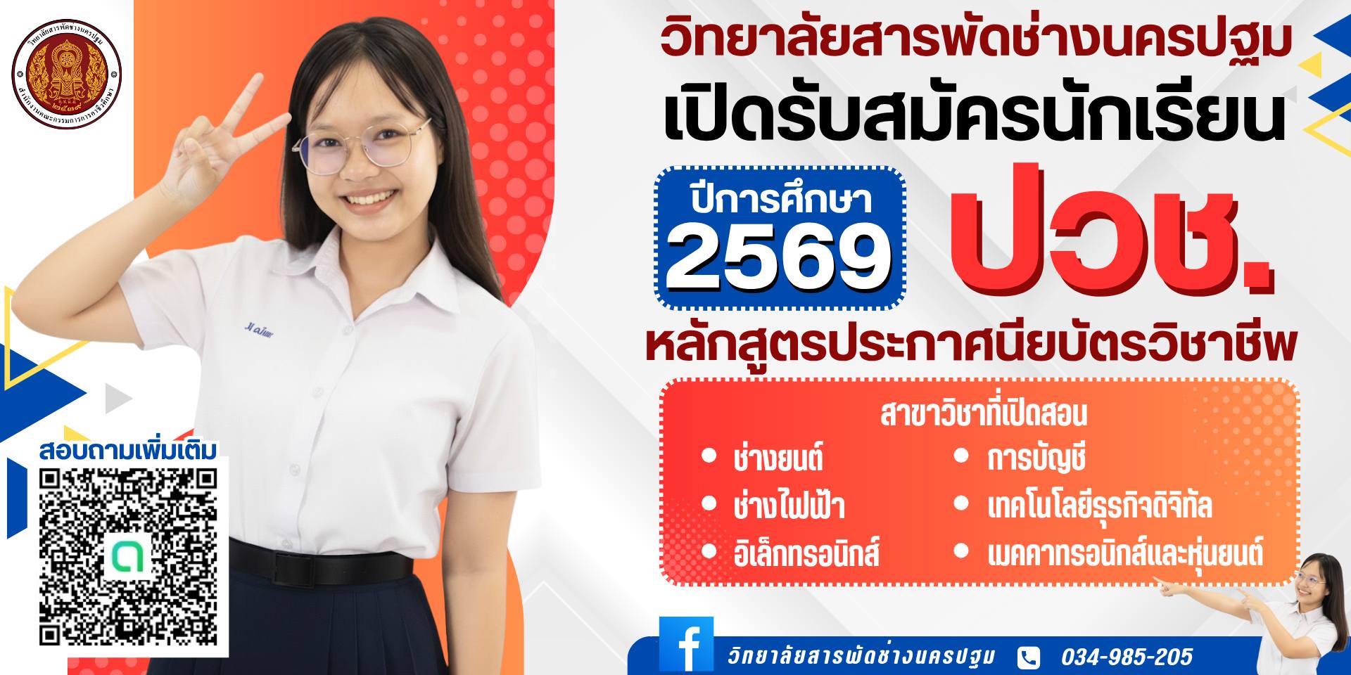 วิทยาลัยสารพัดช่างนครปฐม ประกาศรายชื่อผู้ผ่านการคัดเลือกพนักงานจ้างเหมาบริการฯ (ยามรักษาการณ์ และ แม่บ้าน) รายละเอียด