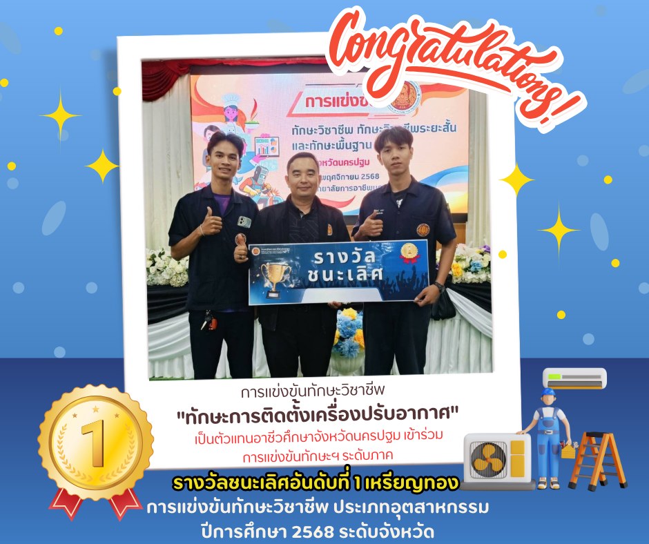 วันที่ 27 พฤศจิกายน 2568 นายเทวฤทธิ์ อ่อนทอง ผู้อำนวยการวิทยาลัยสารพัดช่างนครปฐม พร้อมด้วย คณะผู้บริหาร ครู บุคลากรทางการศึกษา และนักเรียน ร่วมกิจกรรมการแสดงของนักเรียน นักศึกษา และแข่งขันทักษะวิชาชีพ และทักษะพื้นฐาน ในงานการประชุมวิชาการองค์การนักวิชาชีพในอนาคตแห่งประเทศไทย การแข่งขันทักษะวิชาชีพและทักษะพื้นฐาน ระดับ อาชีวศึกษาจังหวัด ประจำปีการศึกษา 2568 ในระหว่างวันที่ 26-28 พฤศจิกายน 2568 เพื่อคัดเลือกตัวแทนอาชีวศึกษาจังหวัดนครปฐม เข้าร่วมการประชุมวิชาการองค์การนักวิชาชีพในอนาคตแห่งประเทศไทยและการแข่งขันทักษะวิชาชีพและทักษะพื้นฐาน สถานศึกษาสังกัดอาชีวศึกษา ภาคกลาง ณ วิทยาลัยอาชีวศึกษานครปฐม