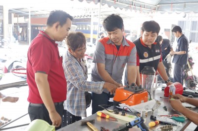 วันที่ 24 มีนาคม 2567 นางสาวพรทิพย์ ภักดีนอก ผู้อำนวยการวิทยาลัยสารพัดช่างนครปฐม พร้อมด้วยคณะผู้บริหาร ครู และบุคลากรทางการศึกษา ดำเนินโครงการบูรณาการการพัฒนาทักษะทางวิชาชีพกับการเสริมสร้างคุณลักษณะอันประสงค์ของผู้เรียนอาชีวศึกษา Fix it จิตอาสา ปีงบประมาณ พ.ศ. 2567 เพื่อพัฒนาและยกระดับศักยภาพศูนย์ซ่อมสร้างเพื่อชุมชน Fix it Center สร้างความเชื่อมั่นในการให้บริการด้วยคุณภาพอย่างต่อเนื่องและยั่งยืนพัฒนาให้นักเรียน นักศึกษา เกิดการเรียนรู้เชิงประสบการณ์ พัฒนาการจัดการศึกษาเชิงบูรณาการกับการทำงานรวมทั้งส่งเสริมให้นักเรียน นักศึกษามีจิตอาสาและช่วยเหลือประชาชน โดยนายวสุกฤต กิตติญาณปัญญา นายกองค์การบริหารส่วนตำบลหนองดินแดง เป็นประธาน ผู้แทนชุมชน เจ้าพนักงานฝ่ายปกครอง และประชาชนเข้าร่วม ณ วัดหนองเสือ จังหวัดนครปฐม