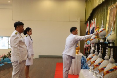วันที่ 23 กรกฎาคม 2568 นายเทวฤทธิ์ อ่อนทอง ผู้อำนวยการวิทยาลัยฯ นำคณะผู้บริหาร ครู บุคลากรทางการศึกษา และนักเรียน จัดพิธีทำบุญตักบาตรถวายพระราชกุศล พิธีถวายเครื่องราชสักการะ วางพานพุ่มเงิน-พุ่มทอง และถวายพระพรชัยมงคล งานเฉลิมพระเกียรติพระบาทสมเด็จพระเจ้าอยู่หัว เนื่องในโอกาสพระราชพิธีมหามงคลเฉลิมพระชนมพรรษา 28 กรกฎาคม 2568 ณ อาคารหอประชุม วิทยาลัยสารพัดช่างนครปฐม